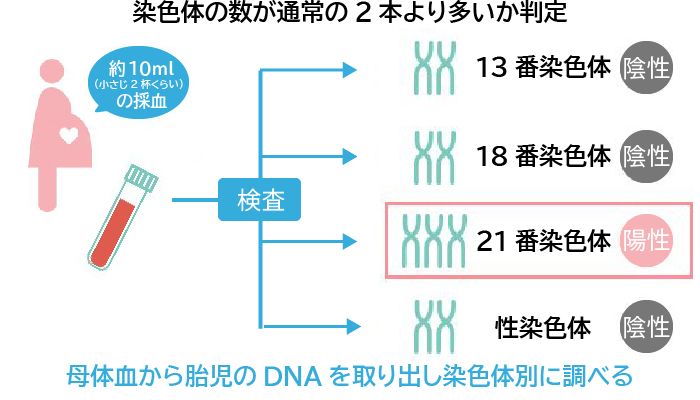 母体への負担が少ないです。これまで唯一の「精度の高い検査」であった確定的検査(絨毛検査や羊水検査)は妊婦さんには「腹部を刺す」、赤ちゃんには「流産のリスクを伴う」といわれ、妊婦さんにとって大きな負担や影響を与えるものでした。